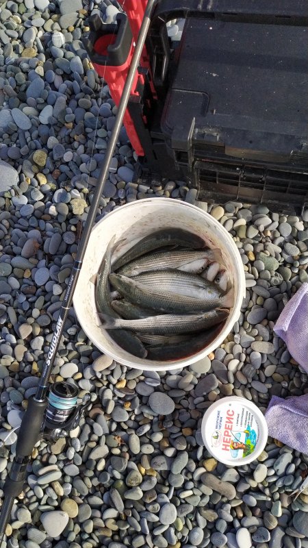 С утра кефали было много, взял своё с 9 до 11 и ушёл. На закате вернулся — кефаль ушла, ни одной. Море красивое, но без поклёвок.