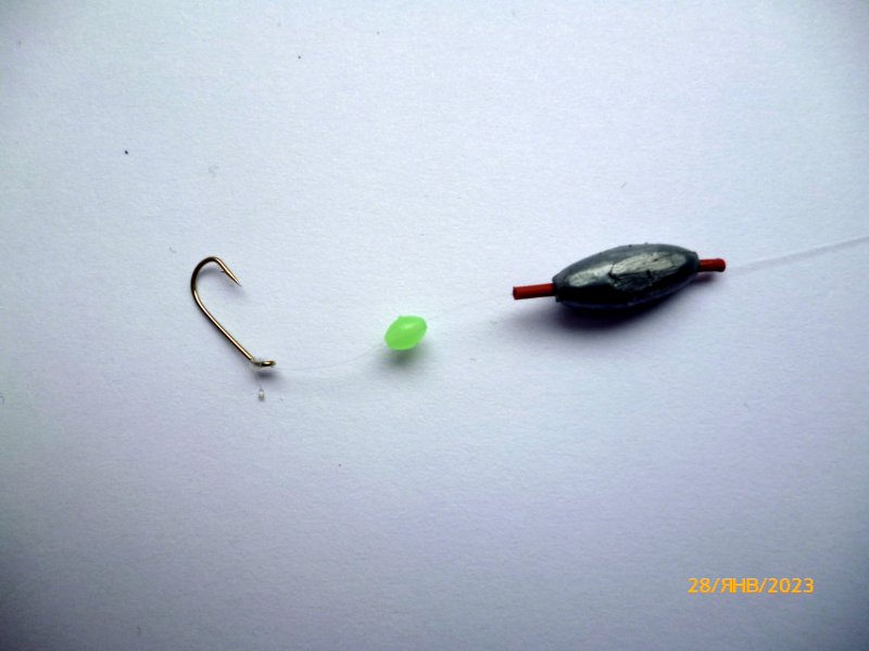 Оснастка под барабульку: крючок 14, 0.12, груз 2.5 г. По штилю зайдёт, на прибое добавлю веса у бровки.