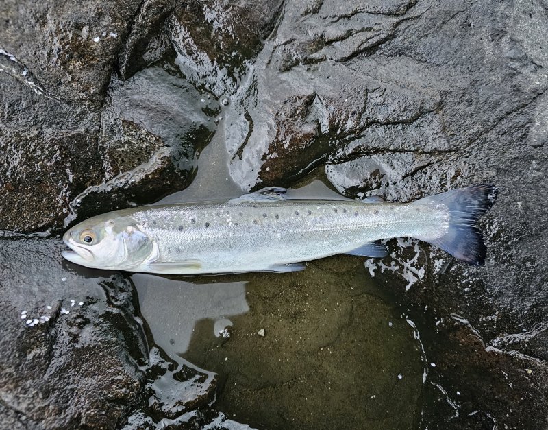 Год на год не приходится. На ставку не ходил, пилькеры молчат. Взял малька лосося, потерял мелкого саргана. Дождь кончился — задуло, свернулся.