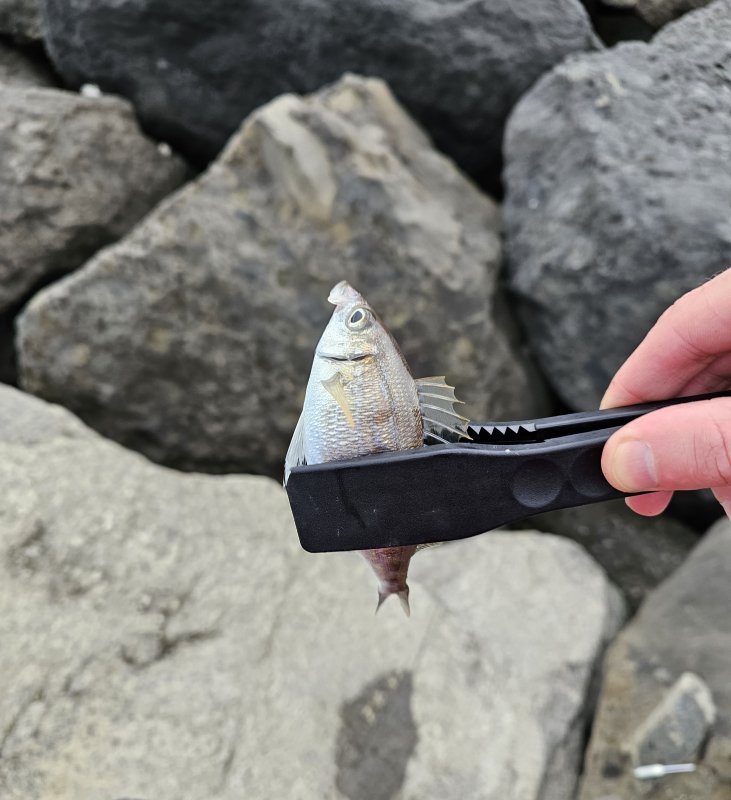 За портовой стенкой прибило траву — проводки не было. Нашёл чистую воду на открытом, рыба ожила, взял рыжика. Усилился боковой ветер и дождь с волной — смотал снасти. Совет: дождевик и перчатки обязательны.