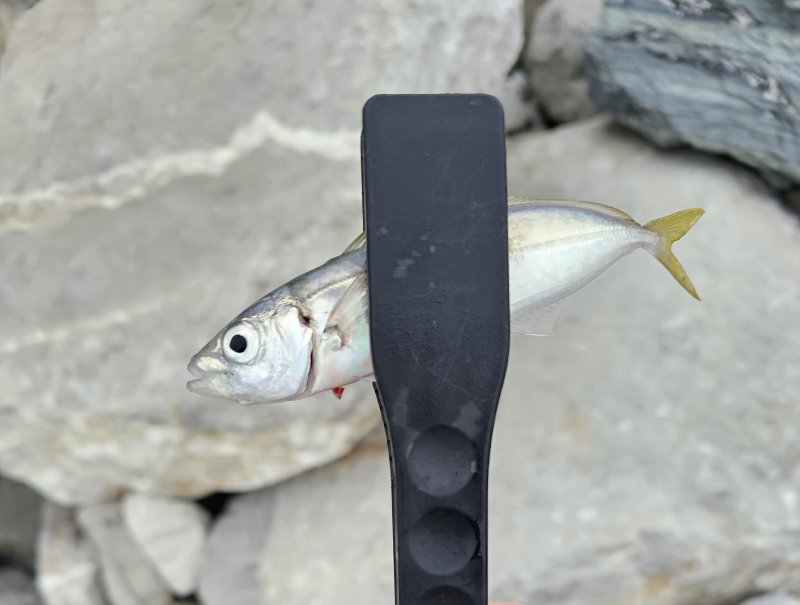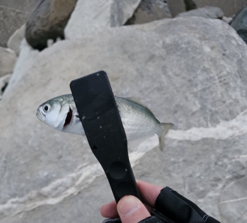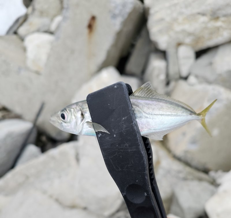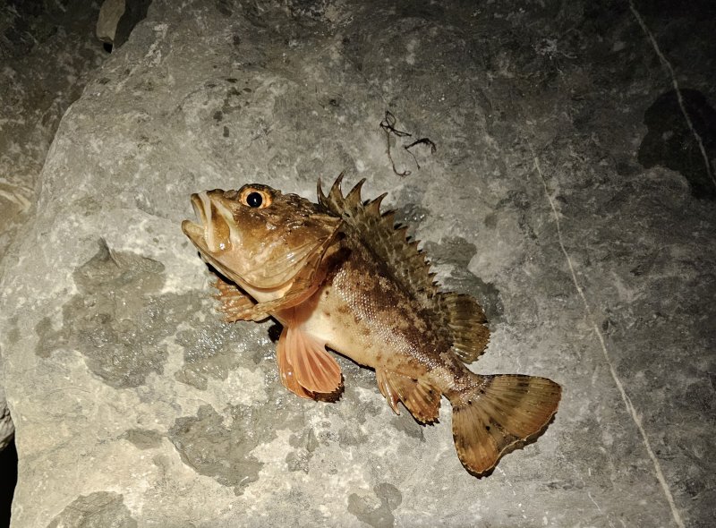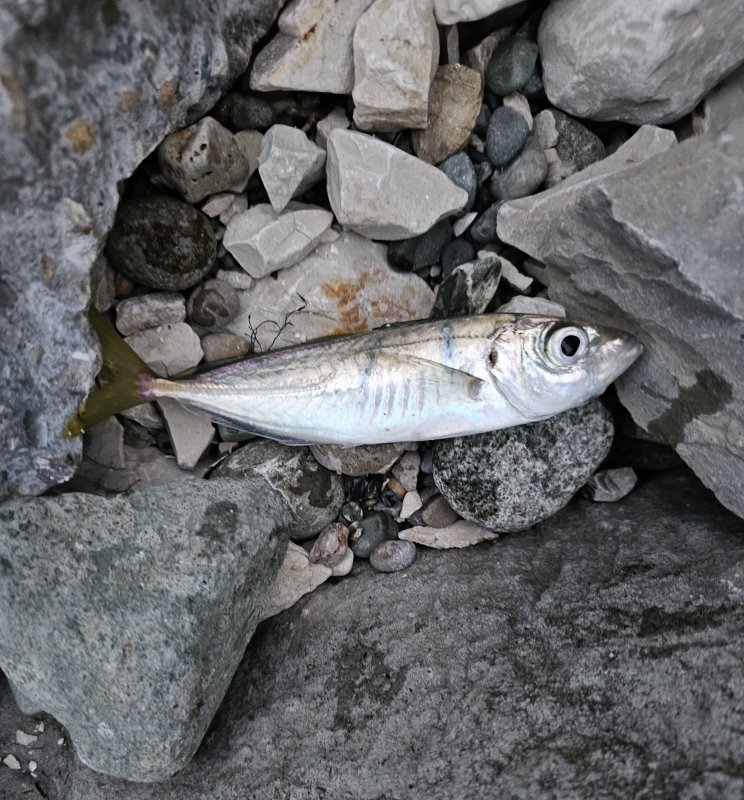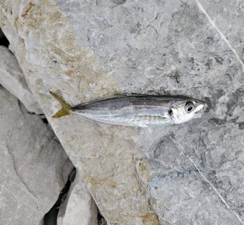 Накат большой, но за стенкой комфортно. Подводный охотник показал лаврака 3–4 кг. Серия ставрид, затем срез — поставил пилькер, тишина. Вернулся и добрал ставриду плюс небольшого луфаря.