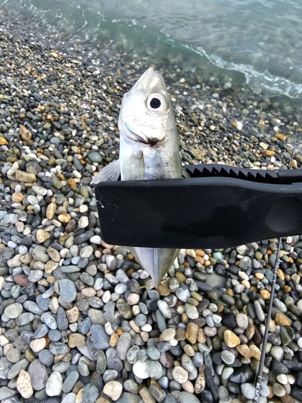 Доехал до свинарника, почти штиль, но сильное боковое течение. Эксперименты мало помогли, лучше всего работала маракуй. В улове ставридка и ерш, у соседей ещё окунь и барабуля.