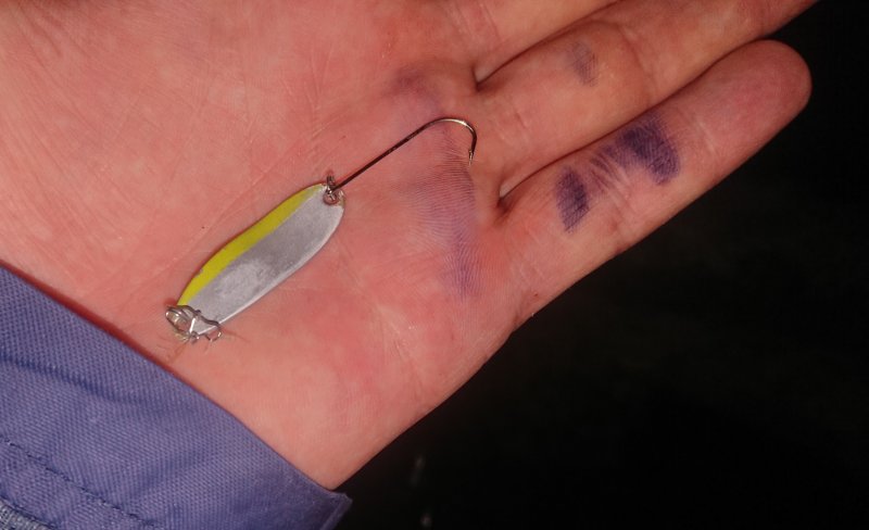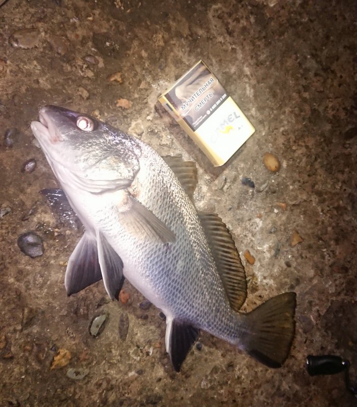 Ставрида на месте, но «шпроты». Ветер выносил, перешёл на 3–3.5 г. Карась у дна рвёт резину. Горбыля взял, 600–700 г на глаз, отпустил. Без подсака второй сошёл.