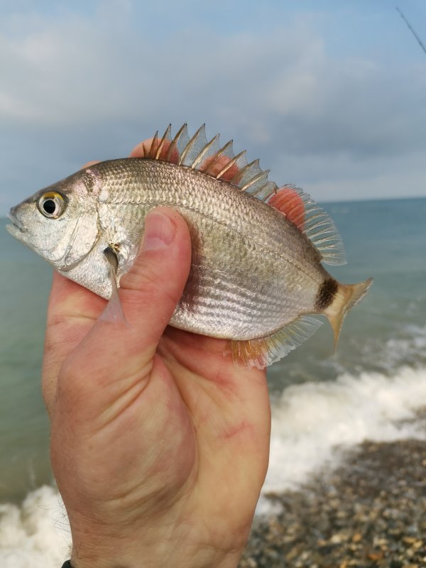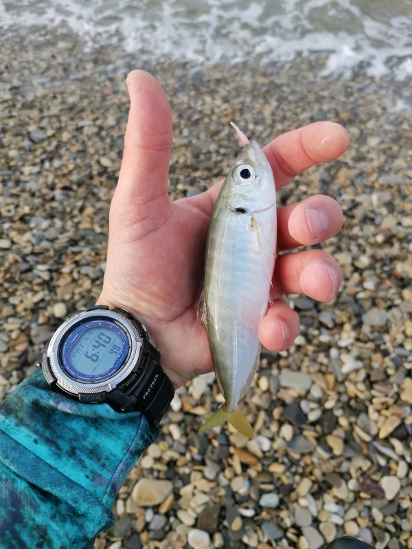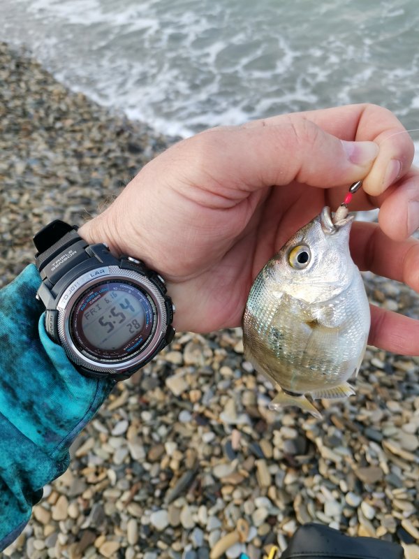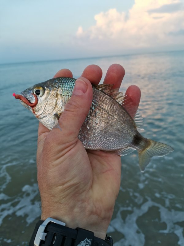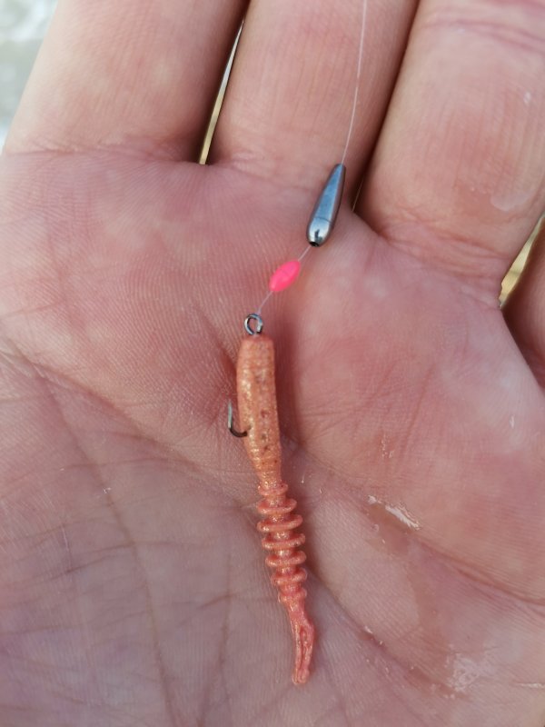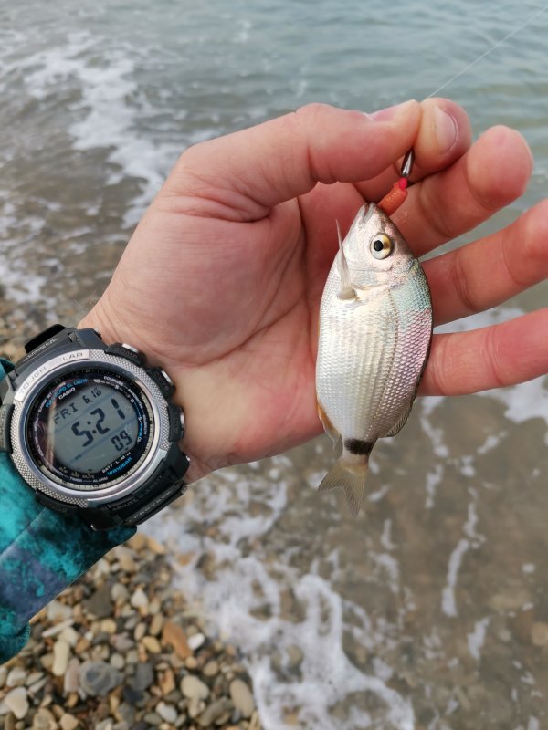 Дикий пляж перекрыла стройка марины. Ходил по волноломам с 4:30. С 5:10 до 6:00 хороший выход между бунами, крупного карася не было. Техас 0.75 г, шнур 0.2.