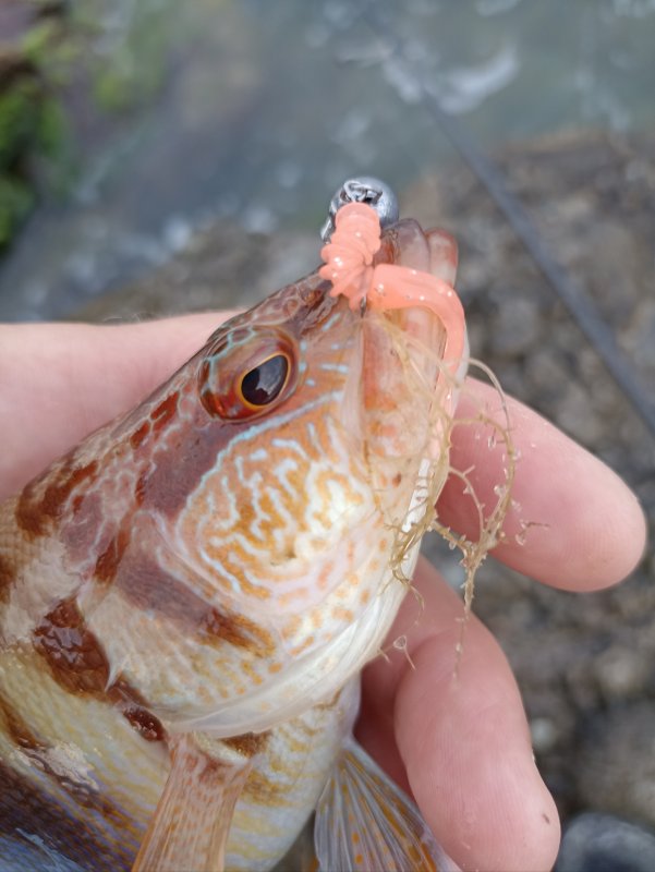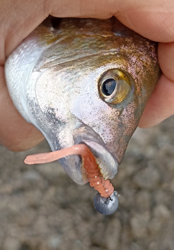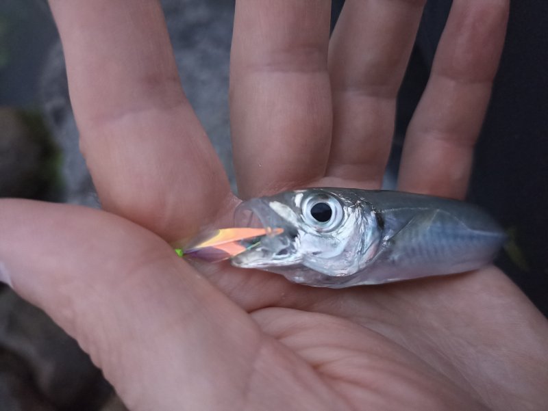 С прогревом рыба отметалась — у кромки в ходу мелочь. Ставрида покрупнее и карась отошли. По микроджигу: сухие палки до 3–5 г, шнур до 0.3 PE, чебурахи 3 г. По ставриде — 1.5–2 г и слаг 1.8", либо бомбарда; самодур до заката тоже выручает.