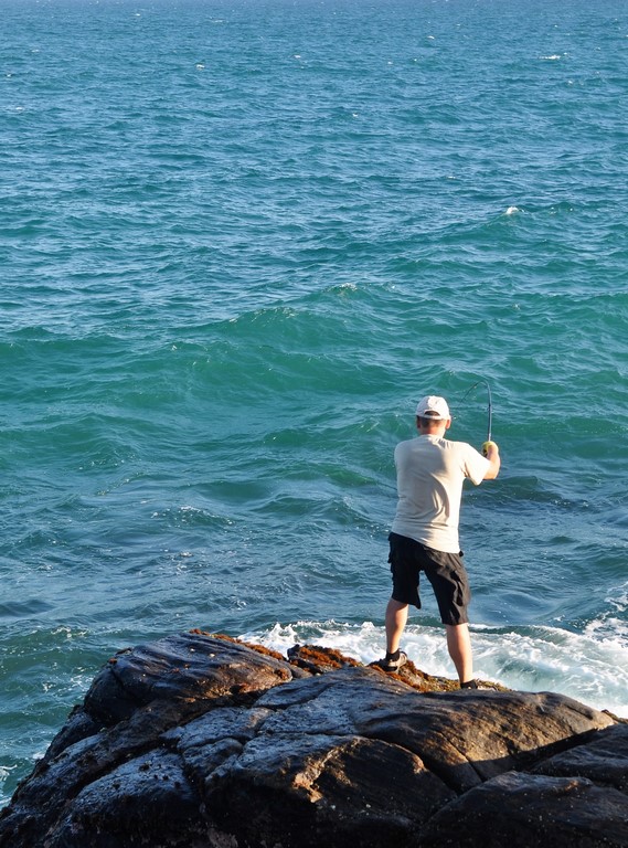 Рифы или прибрежные камни - это одно, скала в несколько метров - другое. Смыть может с рифа или валунов, но не со скалы. Один раз тоже снесло с камней - после этого рыбалка в брюках, чтобы не резать ноги. Для понимания о чём речь, фотку кидал выше.
