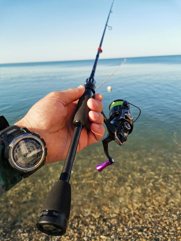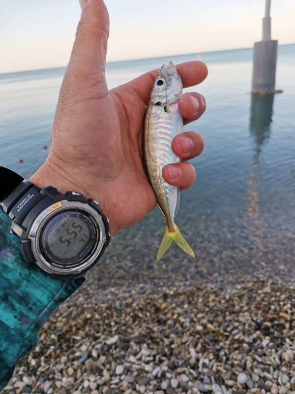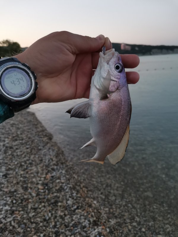 С 4:30 старт, первый карась и горбылик на Rockfish Craftsman Power Shirasu 2" в 345 цвете. Потом глухо до ставриды около шести. Поставил Jukusei Aqua Katsu Aji Komushi — добрал пару бычков и ставридок. Северо-северо-восток прохладный, поклёвки редкие.