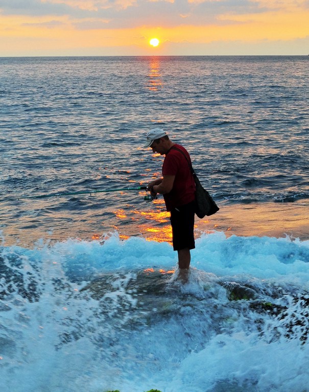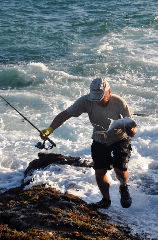 Да, но у вас скалы пологие, а у меня точка с обрывом вертикаль. Волна максимум окатит сверху, если зевнул. Ловля была на попперы и на силиконовые кальмары, летит 50-60 м, особенно по ветру. Проблема с вываживанием - прибрежная полоса метра 3-5 сплошной прибой, волны хаотичные, поппер бьёт об камни, царапает, приманку жалко. Рыбалка в итоге выходила такая - завёл рыбу и уводи метров на 20-30 в сторону от зубастых гряд. Ловил правее Тангале, в Паликадуве. В Мириссе стоял на рифе, обувь спец, шимановская, без неё никак.