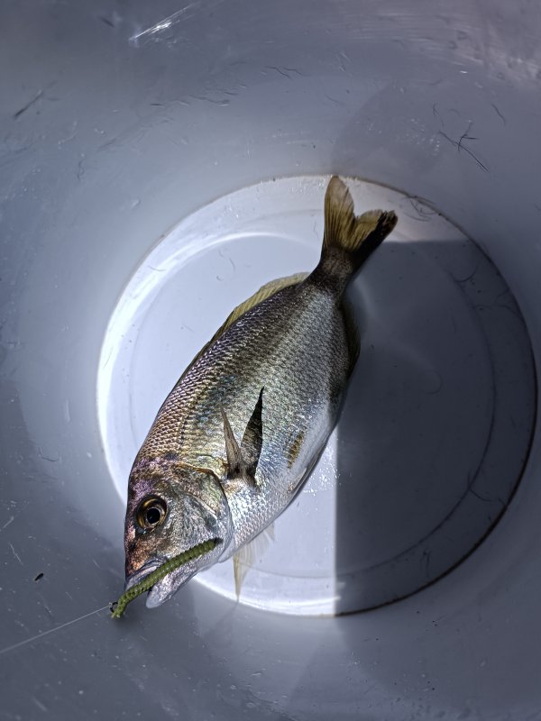 С вечера ловил у берега, целью был горбыль, ставил крючок №4. Карась попался один, мелких горбыльков отпускал, карася сварили собачкам.