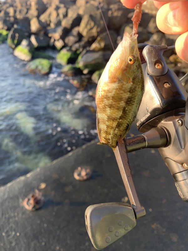 Сегодня в Несебре осваивал бомбарду. Нормальная рыба близко не подошла — одна мелкая кефаль на червя. Из-под пирса клюёт непонятная «санфиш». Это кто вообще?