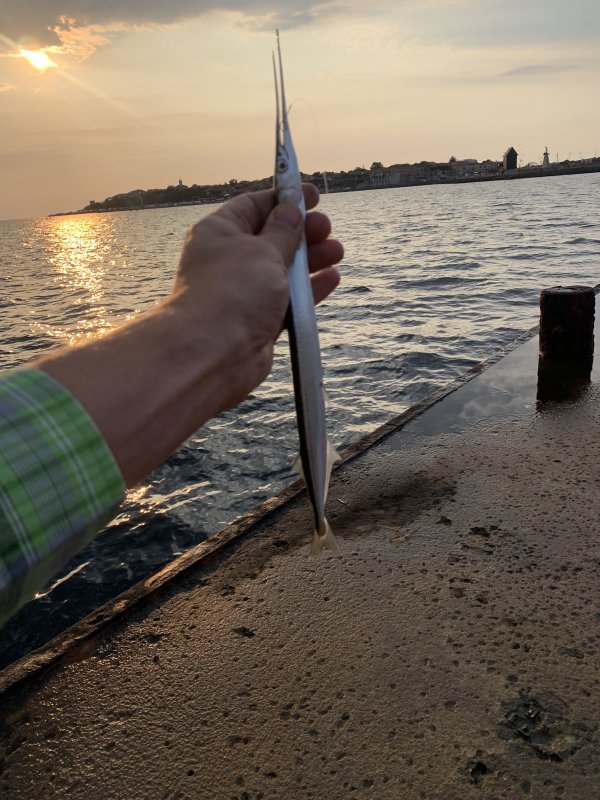 Несебр: сарган на червя после подсказки местного - взял немного на жарево