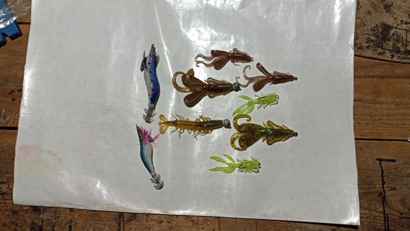 По опыту Гоа и эмиратов хорошо работает вот такая резина разных размеров на небольших весах 8-12 г. Проводка - резкий твич в подводах около камней. Упал на дно - считай прощай приманка. И «бубны» на кальмара и каракатицу держите.