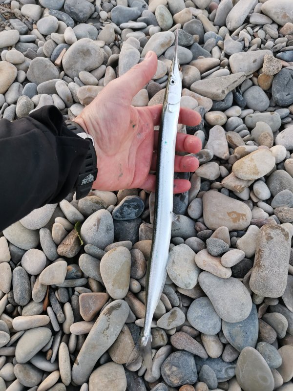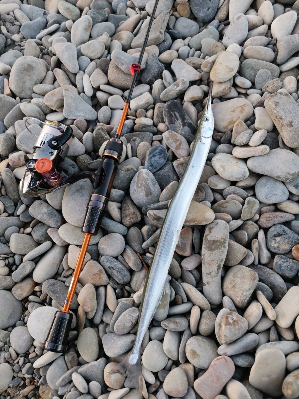 На рассвете сначала скучно, потом подошёл сарган — поклёвки почти на каждой проводке, но реализация хромает. Леска перетиралась о зубы, под конец попался карась. Мормышка 0.35 г, монка 0.07 мм — поклёвки отличаются от МДЖ.