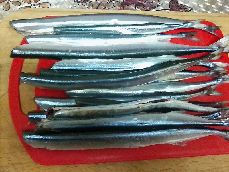 На нарезку из саргана хуже, чем на окуня и ласкиря — шкура у тех прочнее. Пару отпустил подрастать.
