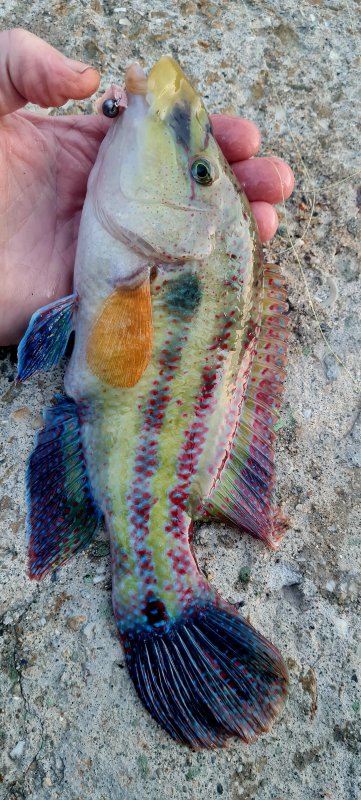 Запад Ялты: рыба спит, но попалась рекордная для меня зелёнуха - обрыбил спин до 2 г