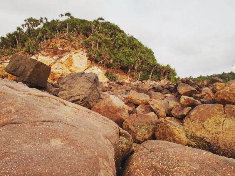 Смотрите что-то с толстой резиновой подошвой и высоким бортиком до щиколотки, типа высоких конверсов. У меня было похоже на фото - не спасло, провалился между камней, две недели заживлял местными присыпками. В кроксах однажды носил осколок ракушки в пятке два дня - кайф так себе.