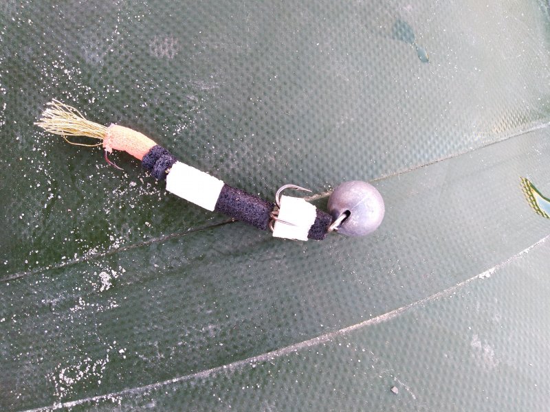 Идея такая: минимандула на плетёнке, одинарник №12 в хвосте, груз как у дроп-шота или отводного. Меньше зацепов, у ласкиря атака в хвост — хочу протестировать.