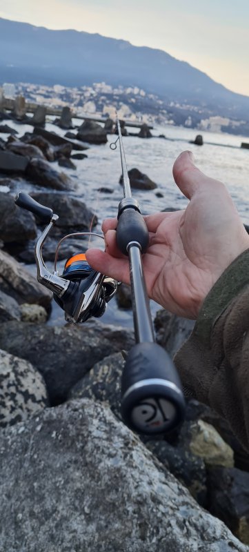 Ловил в черте Ялты спиннингом 1–7 г, рост 209 см. Пробовал креветку и силикон. Штиль, солнце, средний накат. Вода +9, воздух +13. Морская рыбалка в Ялте рановата — поклёвок не было.