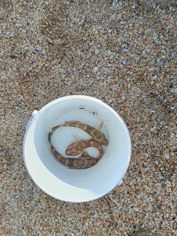 К 12:30 клёв стих. На булер с креветкой уговорил 3 бычков и маленькую камбалу. Жду подход рыбы к берегу.