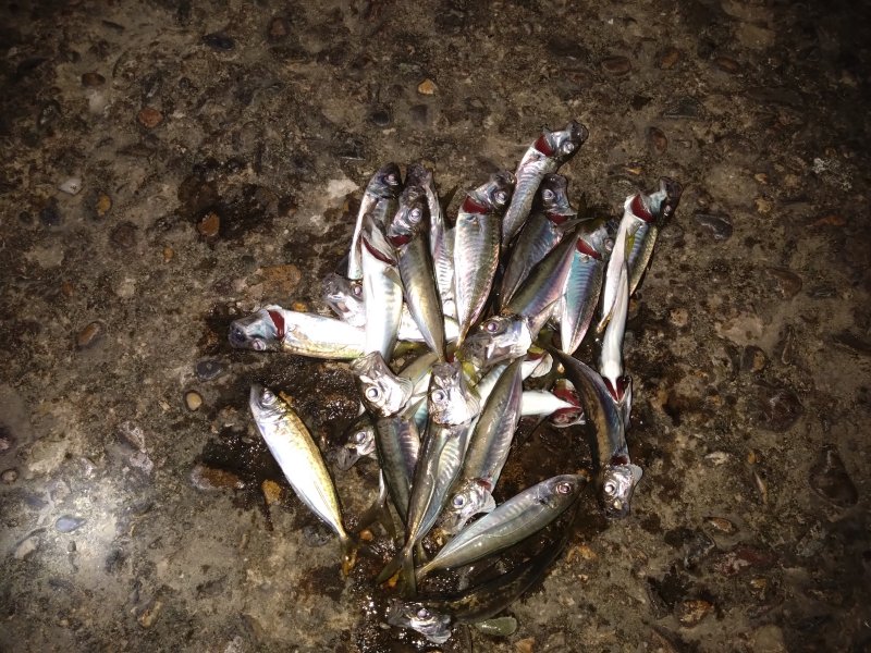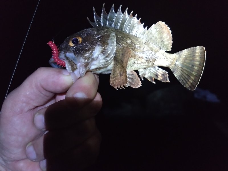 Размер мелковат, горбыля не уговорил. В улове бычок и мелкая скорпена. Видел скачущего саргана и стаю кефали. Взял на сковородку немного.