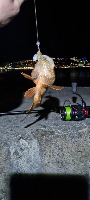 С 20:00 до 23:00 с буны. Ставрида и окунь не активны. На 0.3 ре ю-джиг что-то мощное оторвало чебурашку. Поймал ещё мелкую неизвестную рыбку.