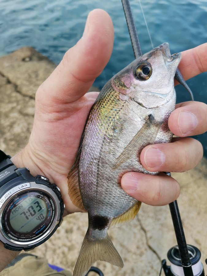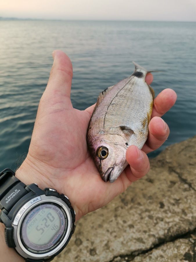 В 4:45 ставрида показалась с дальней бровки, но не зацепил. Карась клевал робко, сбивал приманку, к 8:00 ушёл. Морская рыбалка на «Заре» требует терпения.