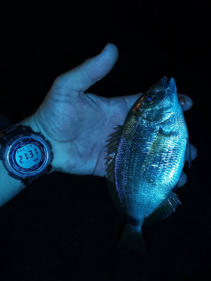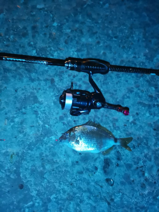 Старожил. Морская рыбалка на Чёрном море. До 21:30 что-то клевало, потом похоже накрыло полнолунием. Штук восемь ставридок и пяток карасей, два на вид крупные. Сходов у ставриды много — давно такого не было!
