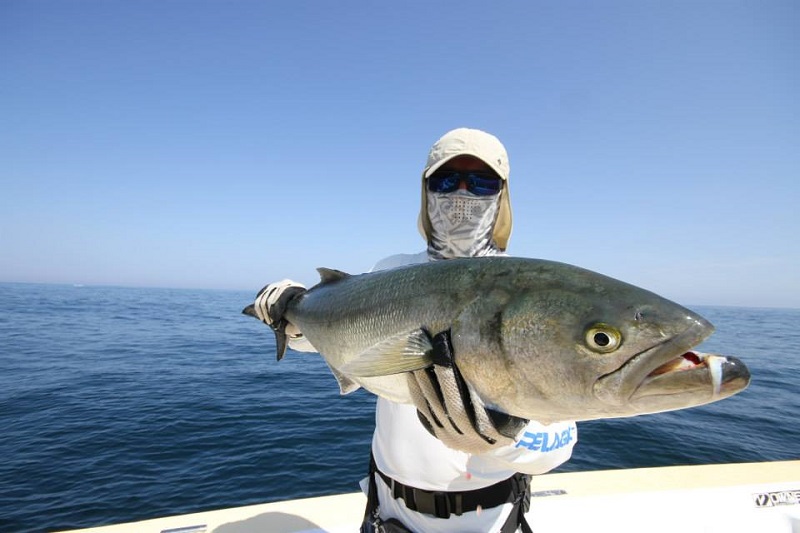 По bluefish отмечу поклёвку: рыба берёт приманку как петлёй - обвивает, поднимает бурун, даёт серию брызг, сводит приманку в кольцо и только потом бьёт. Для этих мест вид редкий. По точкам работали у бровок и свалов вокруг островов, джиг по отметкам на эхолоте, кастинг по выходам хищника.