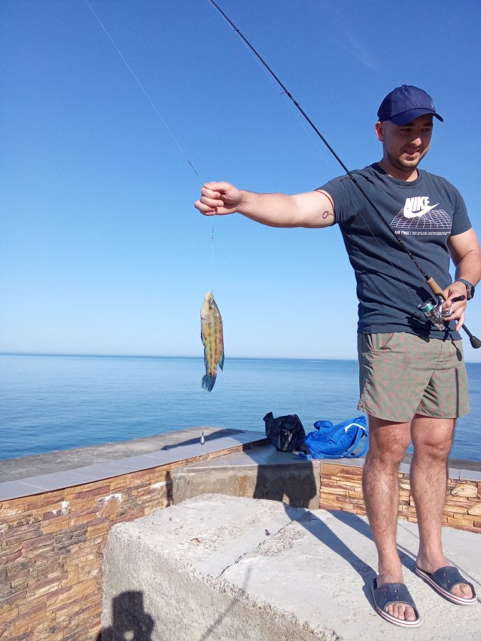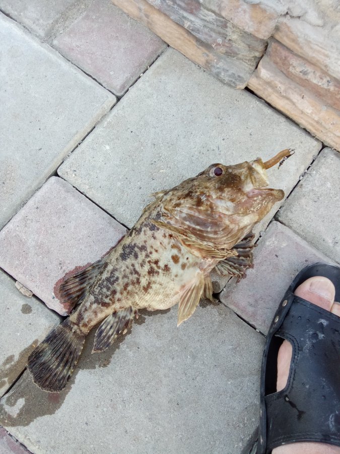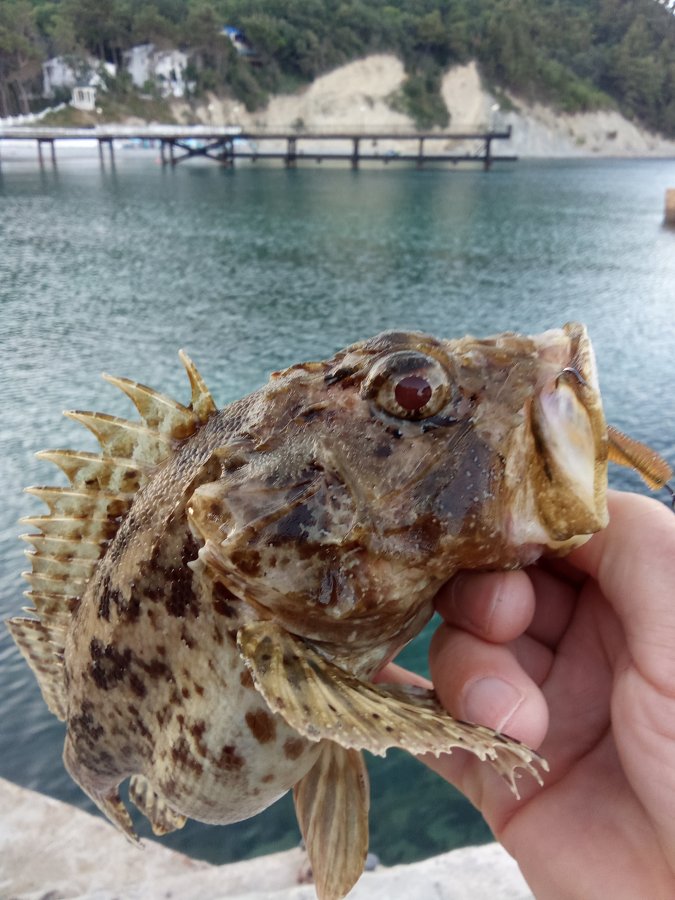 Сухой технарь. Морская рыбалка в Джанхоте: с бетонной террасы, тонущая бомбарда и 2.5 Saturn «маш. масло». Утро удалось, скорпена не мелкая. Коллега тоже отработал место.