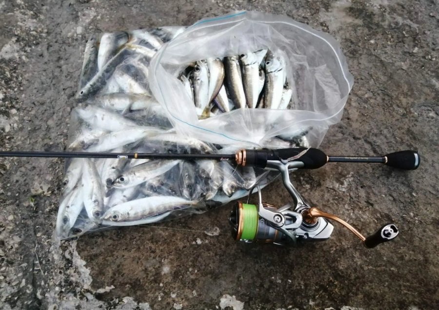 Раньше часто ловил так: бомбарда 1,5–2 г с джигголовкой или голым крючком. В досягаемости заброса шла разная рыба, а особенно чуларка в холодный сезон. Морская рыбалка на бомбардочки — отдельный кайф.