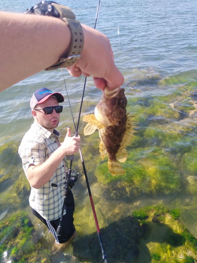 К 9:00 людей много, нашёл свободный пятачок. Бомбарда — только тычки. Перешли на отводной: три скорпены и серия поклёвок. Ночь сорвалась, планирую выйти в 2–3. Морская рыбалка в новинку, интересно!