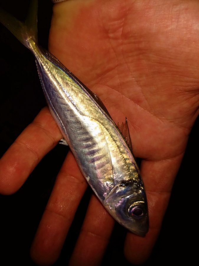С утра проверил точки. Пальчиковый луфарь, карась, по тёмному ставрида на опарыша. Влетел мелкий горбыль — фото и обратно в море. Всем НХНЧ.