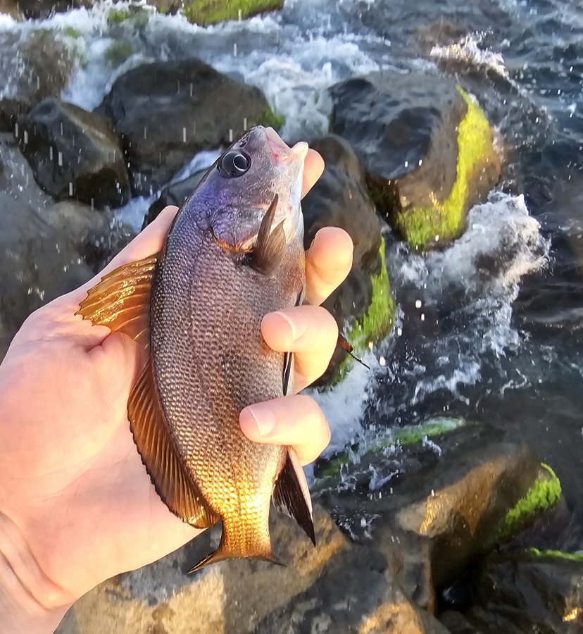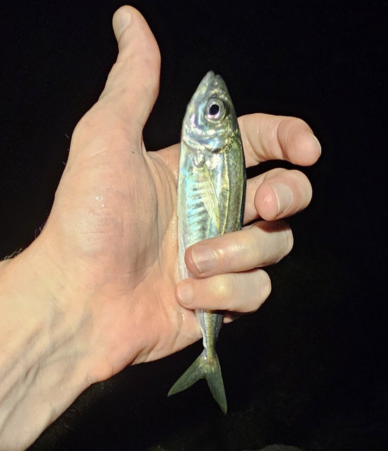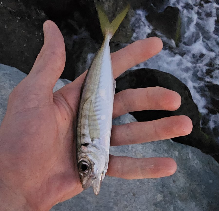 Небольшой накат и ветер. По светлому — детёныш горбыля, пару раз стравил фрикцион. Позже ставридка подходами, чаще мелкая. В конце половил ерша — активный, удалось быстро уговорить пару.
