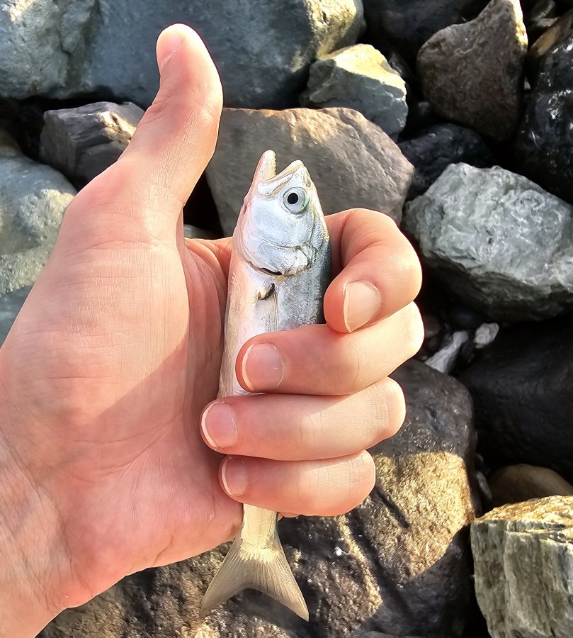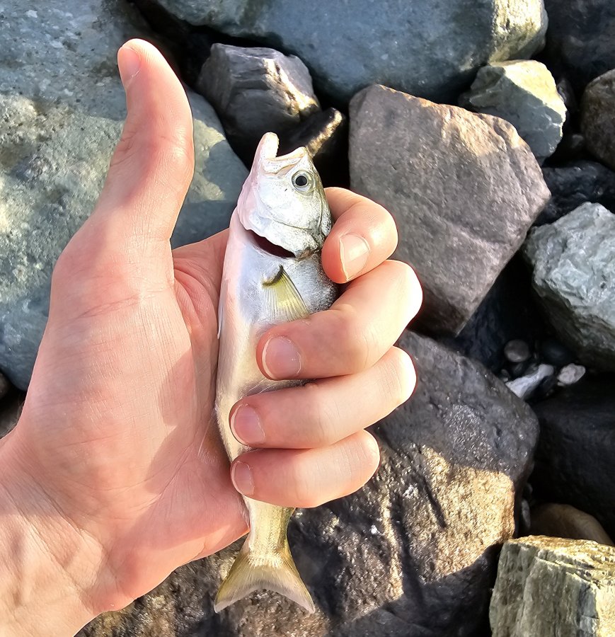 Имеретинка. Вечером встречный ветер, камни накрывает около 4 м, вдоль берега полоса мути ~40 м. По светлому взял три луфарика, как стемнело подошла ставридка, в основном мелкая, в конце влетела одна бонусная. Морская рыбалка на Чёрном море по границе мути работает.