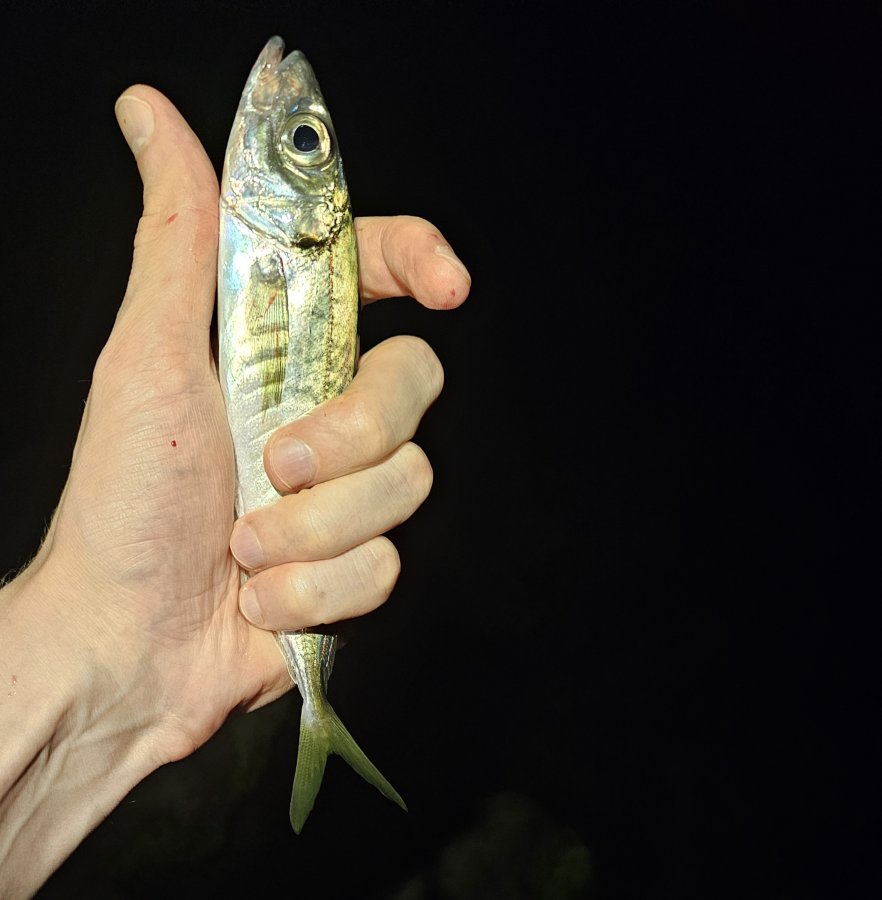 Сухой технарь. Спокойное море, слабый боковой ветер. В сумерках редкая ставрида, позже ещё небольшой выход с парой «зачётных». Затем переключился на ерша — небольшая скорпенка подтвердила дно.