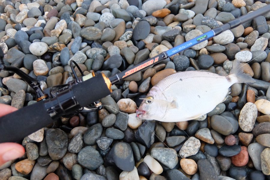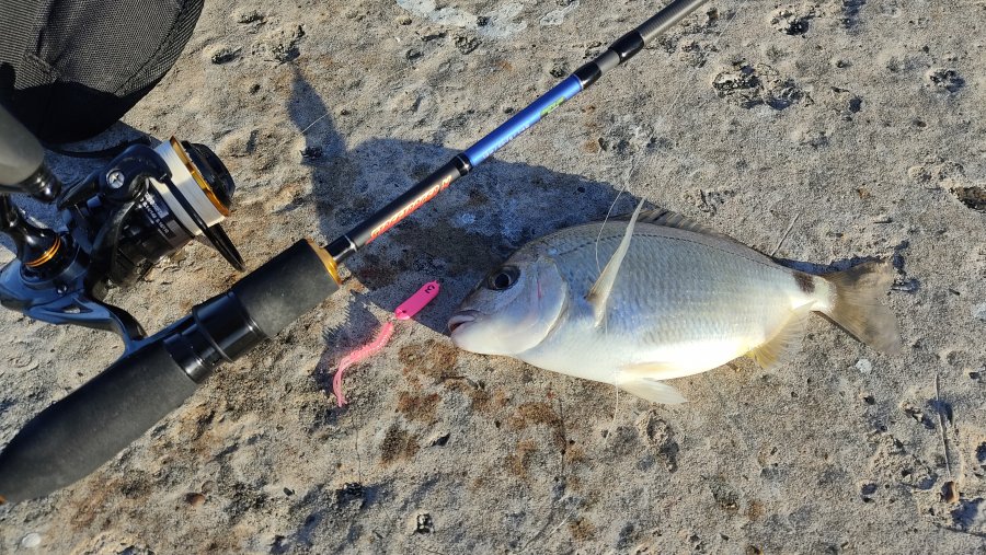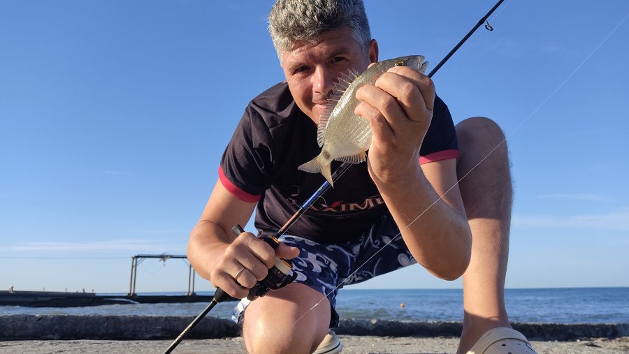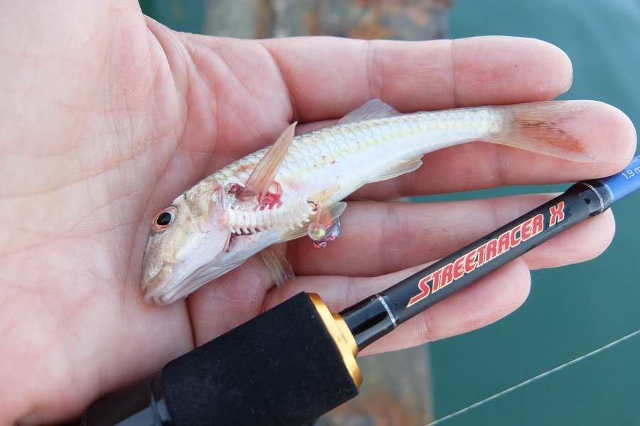 Старожил. Утром пролавливал волнорезы параллельными забросами — караси, бычки, барабули; работали стрейч-приманки на булерах. Вечером ездил в соседний посёлок. Streetracer-X до 7 г, короткий солид — контроль приманки и чёткая передача поклёвки, удобен в путешествии.