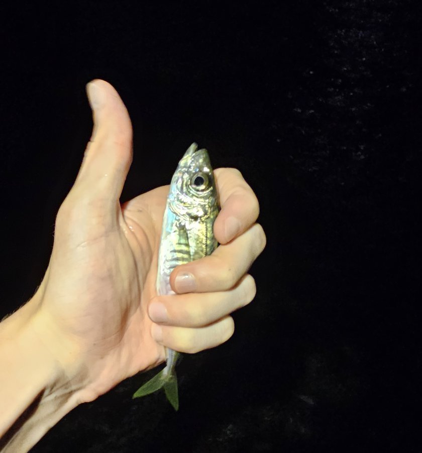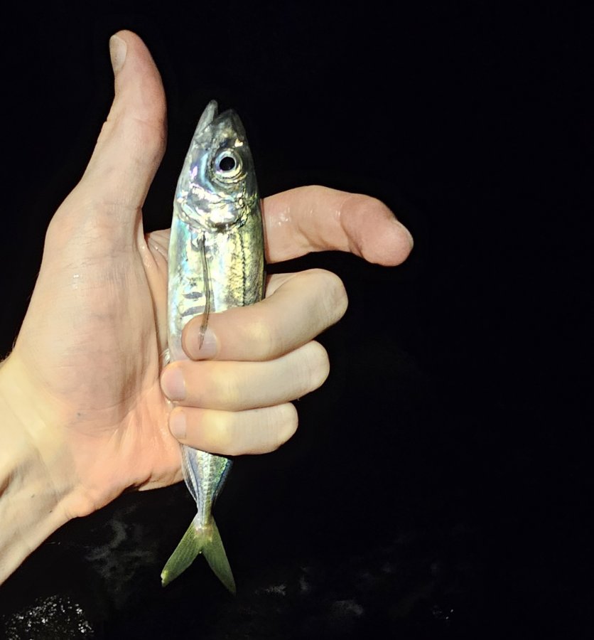 Мини-дневник. Небольшой накат, ветерок. На закате горбыль под аплодисменты набережной. В сумерках час активной ставриды, потом тишина, лишь мелкий сарган. Возврат к ставриде — пару доловил сменой приманки.