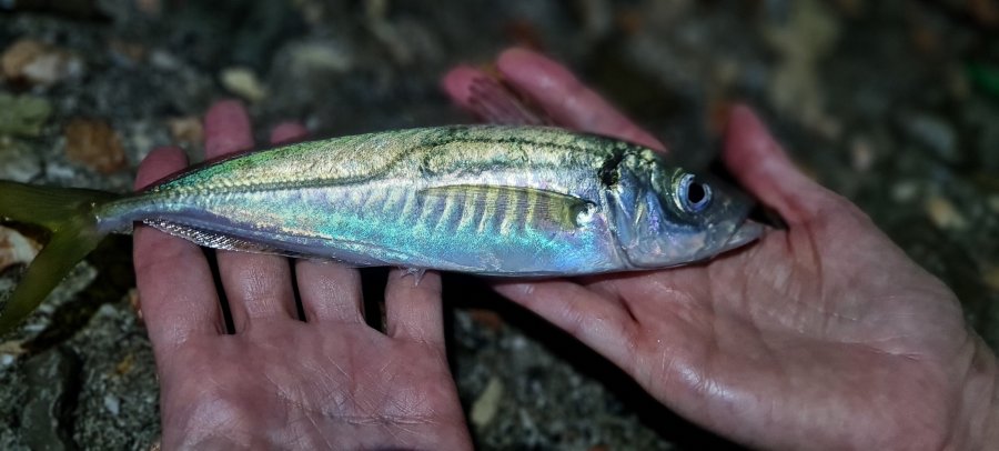 Мини-дневник. До 21:00 луфарь, затем пошла крупная ставрида. Плюс горбылик около 0,5 кг и пара ершей отпущены. «Белая» на поплавок, остальное — дропшот и силикон. Ялта, берег, до 22:30.