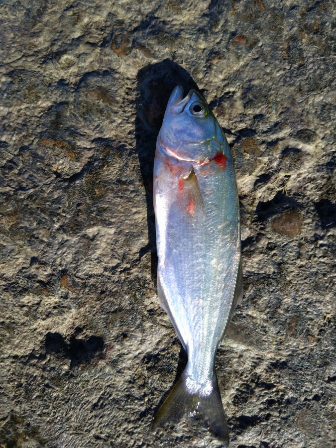 Разговорный южный. Утром почти штиль, сарган бастовал, в прилове ставрида. У дна — караси и зеленухи на опарыша. Чередовал бомбарду, пилькеры, воблеры — взял одного луфаря. Вечером поклёвки луфаря шли периодами с обрезами, шторм стих — и он исчез.