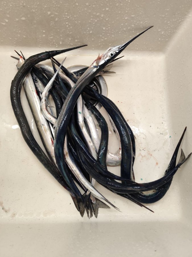 Лермонтово — чуларка сорвалась из-за волны. Переместился в Бжид: сарган шёл стабильно у двух ребят на бомбарду (нереис, опарыш). Моей снасти не хватало, взял своё по минимуму.