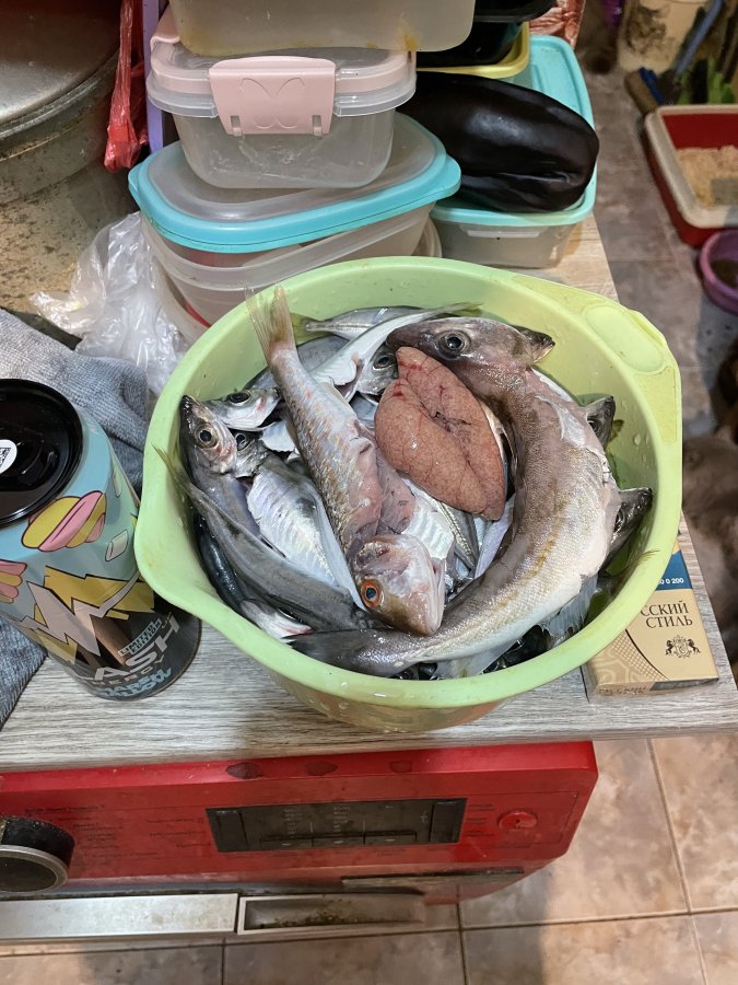 Сегодня выходил в море. Ставрида и смарида, суммарно 5-7 кг. Это распотрошил на жарку. Морская рыбалка на Чёрном море с борта порадовала.