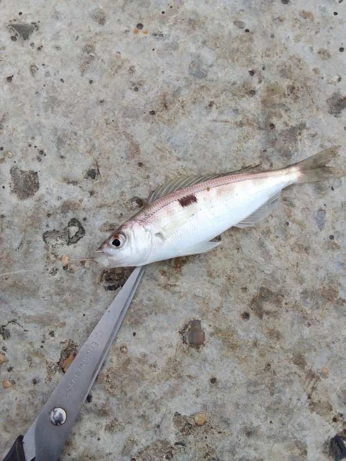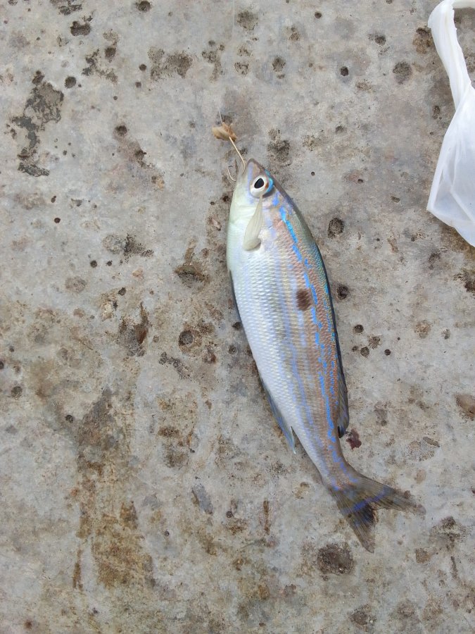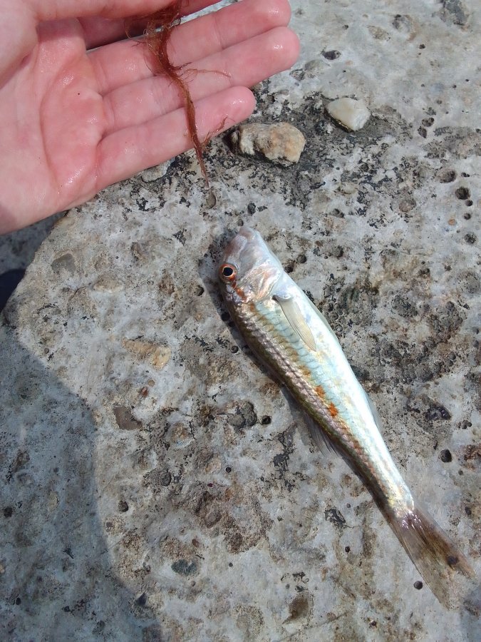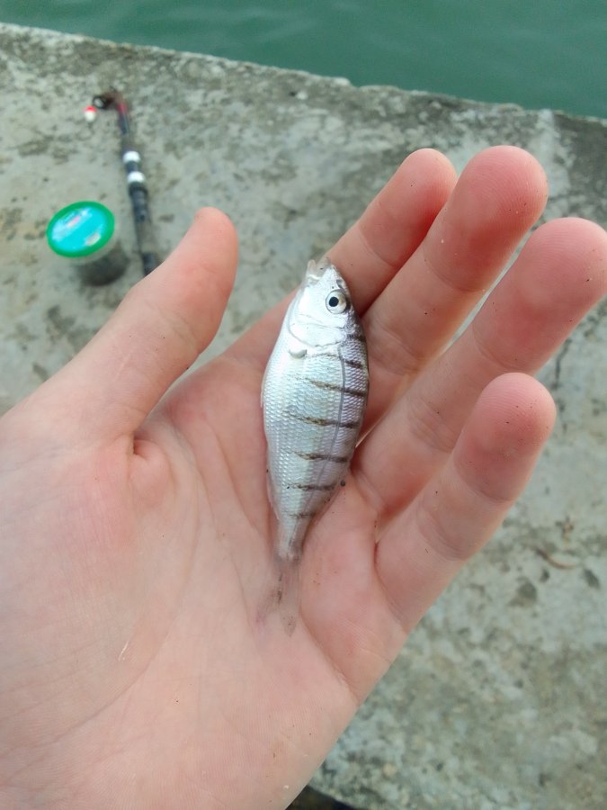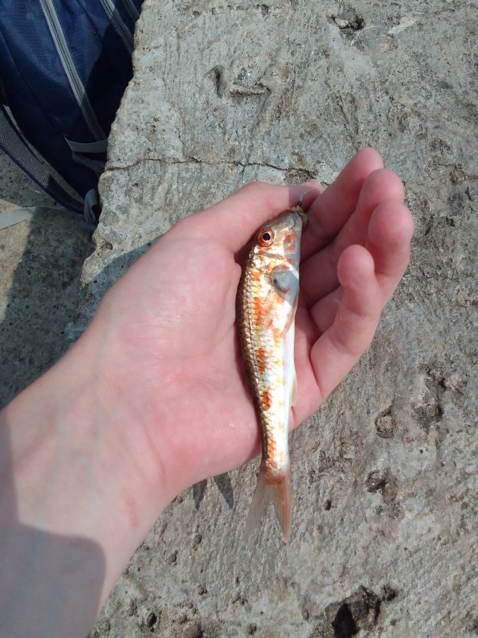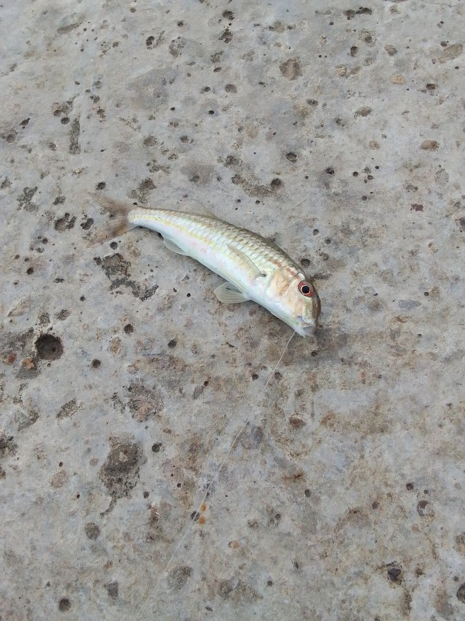С 15 часов до вечера. Отводной с сухим моряком, сначала груз 20 г, затем тиролька 25 г. Итог: шесть барабулей 12–15 см, три морских окуня разных размеров и одна собачка. Морская рыбалка на Чёрном море не подвела.