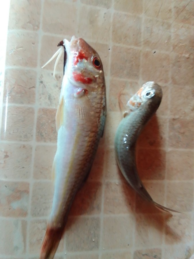 Вчера первая проводка сразу барабуля, потом тишина. Сегодня на буне около пяти часов: две барабули, дракончик сошел у кромки, собачки и мелкая ставрида отпущены. Работал сухой моряк на отводном с тиролькой.