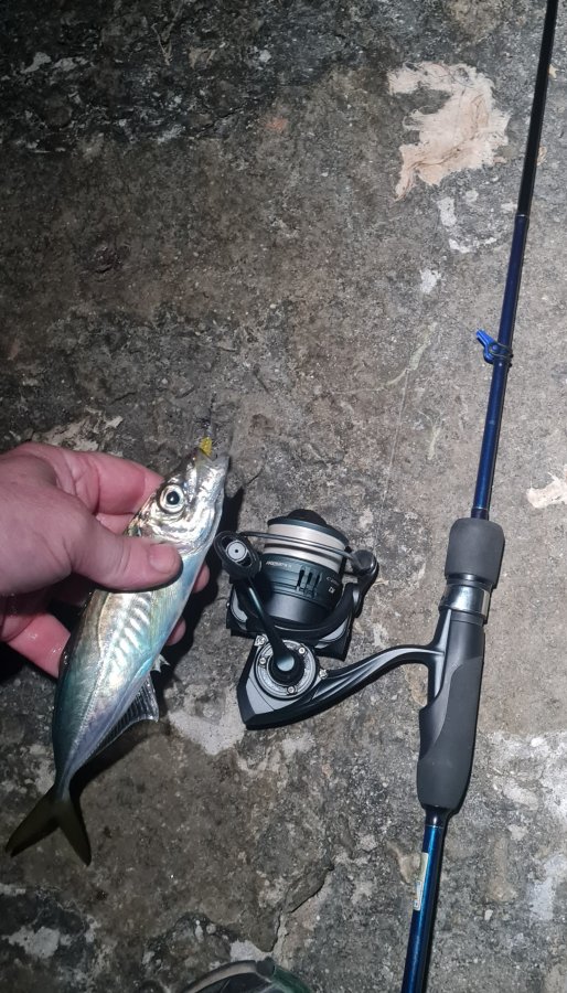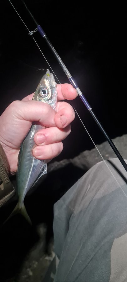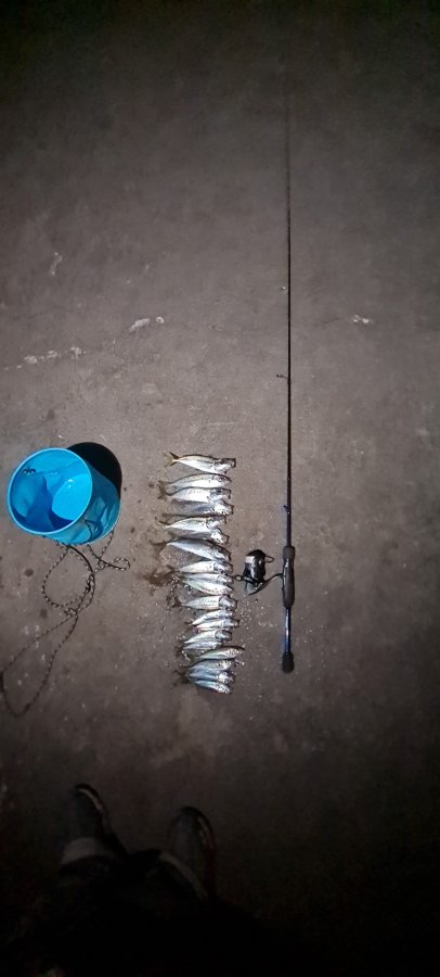 Пришёл в 23:40, ушёл в 2:30. Клюёт наскоками, крупнее — дальше от буны, 10–15 м. У стенки — мелкая. Палка до 5 г, шнур #0.25.
