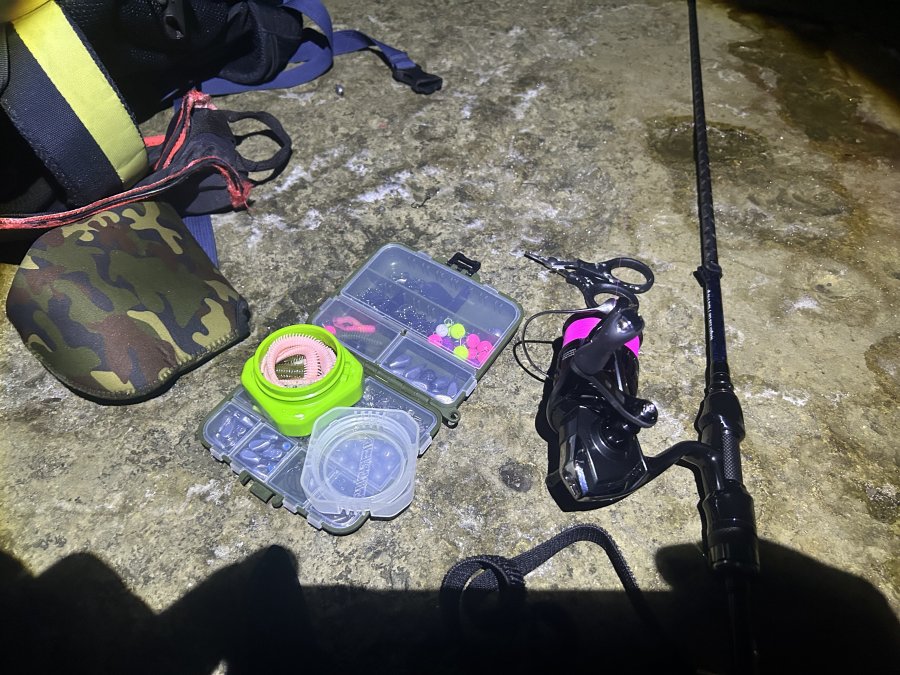 Ночью и днём по пару часов. Меньше зацепов дал скользящий груз на флюре, но четыре обрыва всё же были. Поймал кукушек, ласкиря и мелкую скорпену, крупные скорпены сходили у берега. Ставрида не попалась, стопорок спасал насадку.