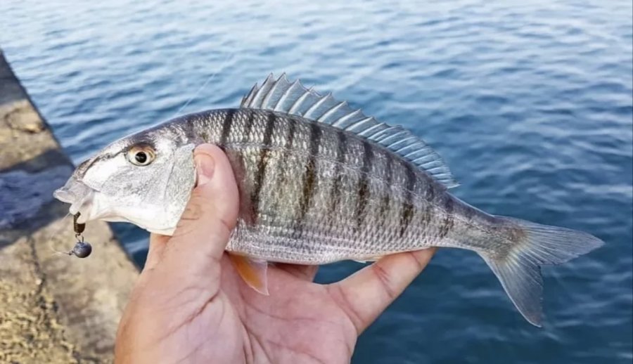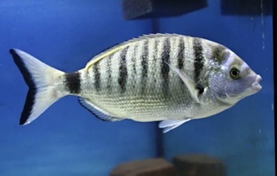 Подсказали: один мармир, другой полосатый карась/зубарик. У карася чёрное пятно перед хвостом, мармир вытянутее.