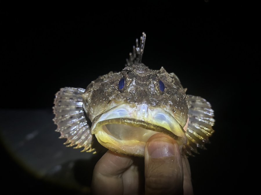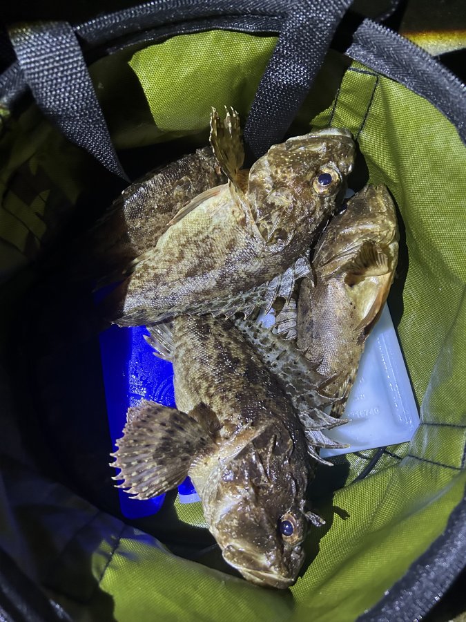 Море спокойное, вечер прохладнее — рыба отзывчивая. Скорпены ~8 шт., кукушки, пара зелёнух. Забрал 4 скорпены — хочу сварить уху.