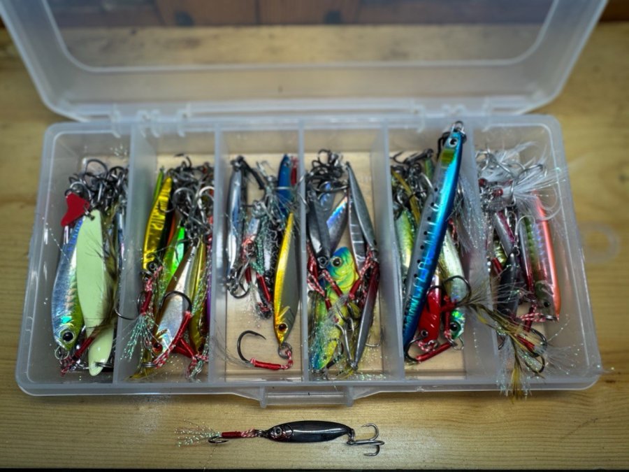 Покажу свою коробку под океан - пилькеры, что выручают годами. По палкам советовать сложно, не зная задачи. Иначе программируем человека на свой стиль. Я хвалил Kosadaka Brave SBRV-196L как универсал между мебару и аджингом, но езжу и с Shimano Free Game XT S76ULS - мне он основной, а новичкам может не зайти. Важна вся линия снасти - палка, катушка, шнур, поводок и то, что кидаешь