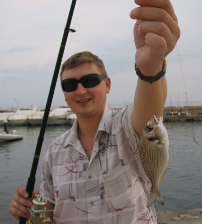 Кто едет в Испанию — можно ловить дораду прямо с пирса на кусочки сардины. Приманку заматывал проволокой, чтобы не срывали. Морская рыбалка в Испании бодрит на берегу.