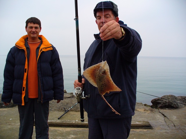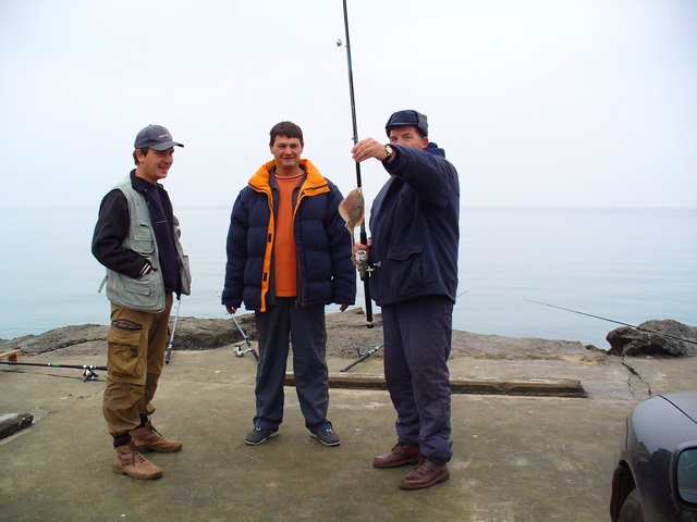 С друзьями из Стара Загора. На Перле калкана нет, взял морскую лису и отпустил. На Коракя все плиты заняты, мелочь и одна скумбрия, 4 маленькие паламиды сорвались. В Несебър у коллеги калкан порвал леску. Морская рыбалка держит интригу.